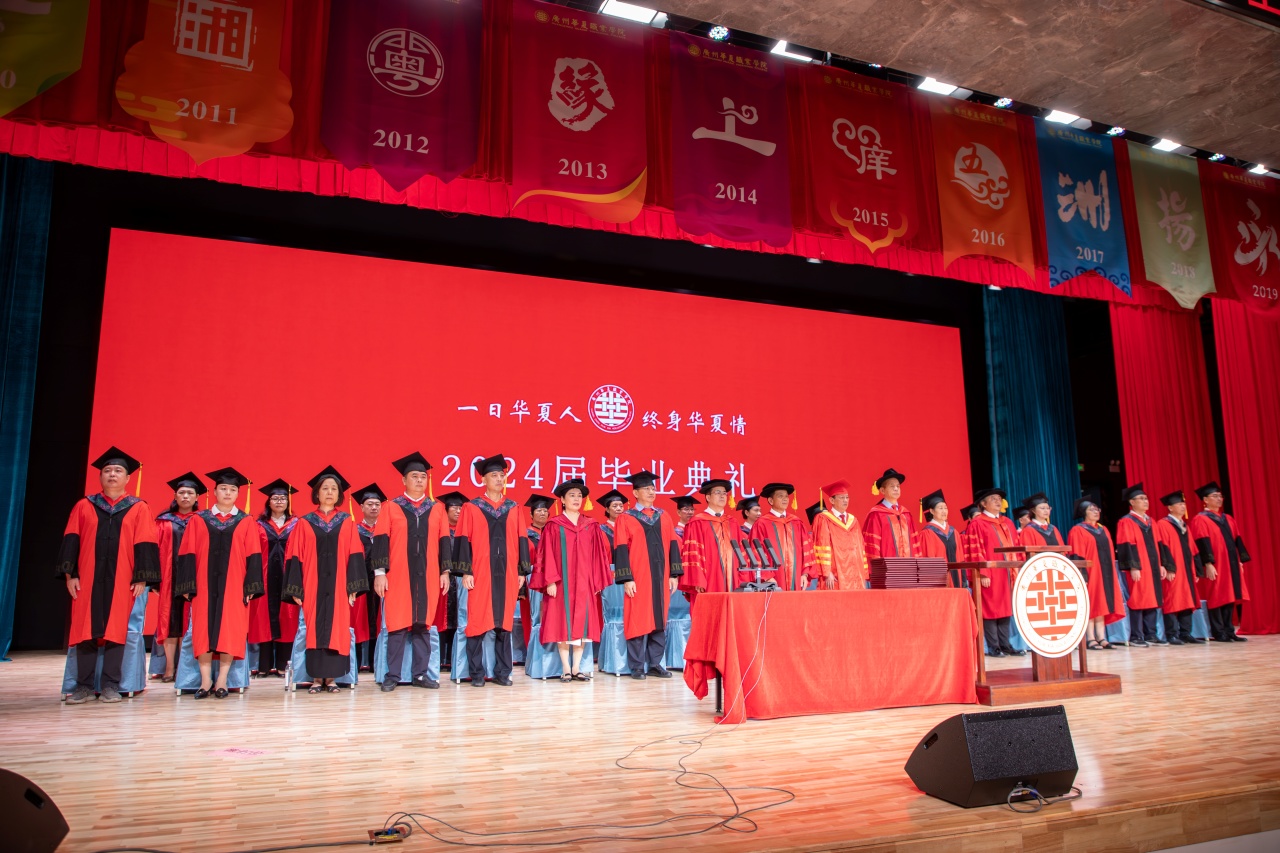 雍和湘粤缘,上庠五洲扬。承华夏精髓,修经史子集。从1986年到2024年,从湖南、韶关再到广州,欧阳少林董事长身体力行地诠释着一位民办教育开拓者对教育事业的热爱与执着,也见证了职业教育在湘粤大地由萌芽到兴盛的全过程。现在挥舞的十三面级旗,见证了从09年到24年历届毕业生的青春,代表着华夏学院育人的丰硕果实,我校遵“厚德、重能、敬业、善事”之校训、重“承华夏文明、育寰宇英才”之教育理念,循“典雅和谐、诚信担当”的华夏精神、扬“一日华夏人、终身华夏情”的校园文化,让学生、家长们放心、开心!