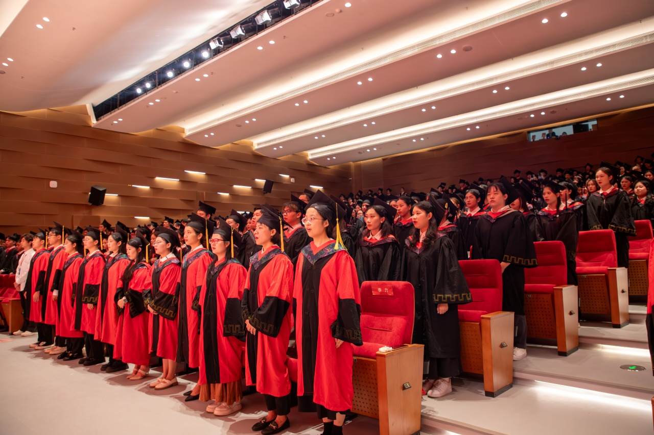 毕业生们齐声合唱《华夏之歌》,这首陪伴他们三年时光的校歌,见证了他们的成长与蜕变,激励着他们勇敢追求未来的梦想。他们将带着在学院学习到的知识与技能,向着未来道路出发。